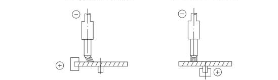 極性是指工件到焊接電源的連接方式,原則上,在螺柱焊接時焊接電源的正極接工件焊接時排斥電弧,而焊接電源的負極接焊槍吸引電弧。如下圖1-1所示